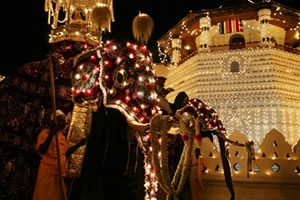 The best time to visit Kandy is the month of July/August when the city takes on an air of festivity. Both foreign tourists and Sri Lankan families flock to Kandy to view the annual festival known as the "Esala Maha Perahera" at which the golden casket containing the tooth relic parades the streets of the city in royal procession. The final night procession is the most spectacular event of the country and is viewed by thousands each year. The procession includes 75 or more caparisoned elephants, traditional dancers and drummers, flag bearers and chieftains, all dressed in glamorous traditional costumes in all their splendour.