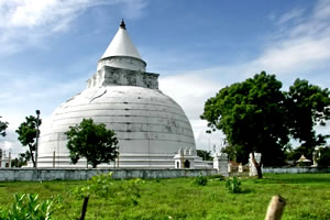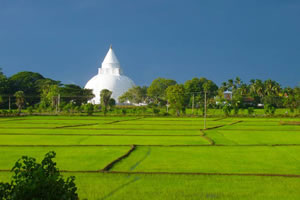 A drive towards the south east through Hambantota takes you to the rural town of Tissamaharama known in ancient times as Mahagama. The road to the Yala National Park and Kataragama passes through this town. There are several archaeological ruins and temples that mark Tissamaharama certainly worth a visit. The town is bounded by a vast and beautiful expanse of lush paddy fields. In the midst of these paddy fields stands the ancient and most impressive Tissa Dagoba (stupa) now restored to its former glory. It is believed that the Lord Buddha visited Tissamaharama on his third visit to Sri Lanka and that a sacred tooth relic and a forehead bone relic are enshrined in a Dagoba here. As such Tissamaharama is considered sacred to Buddhists.
